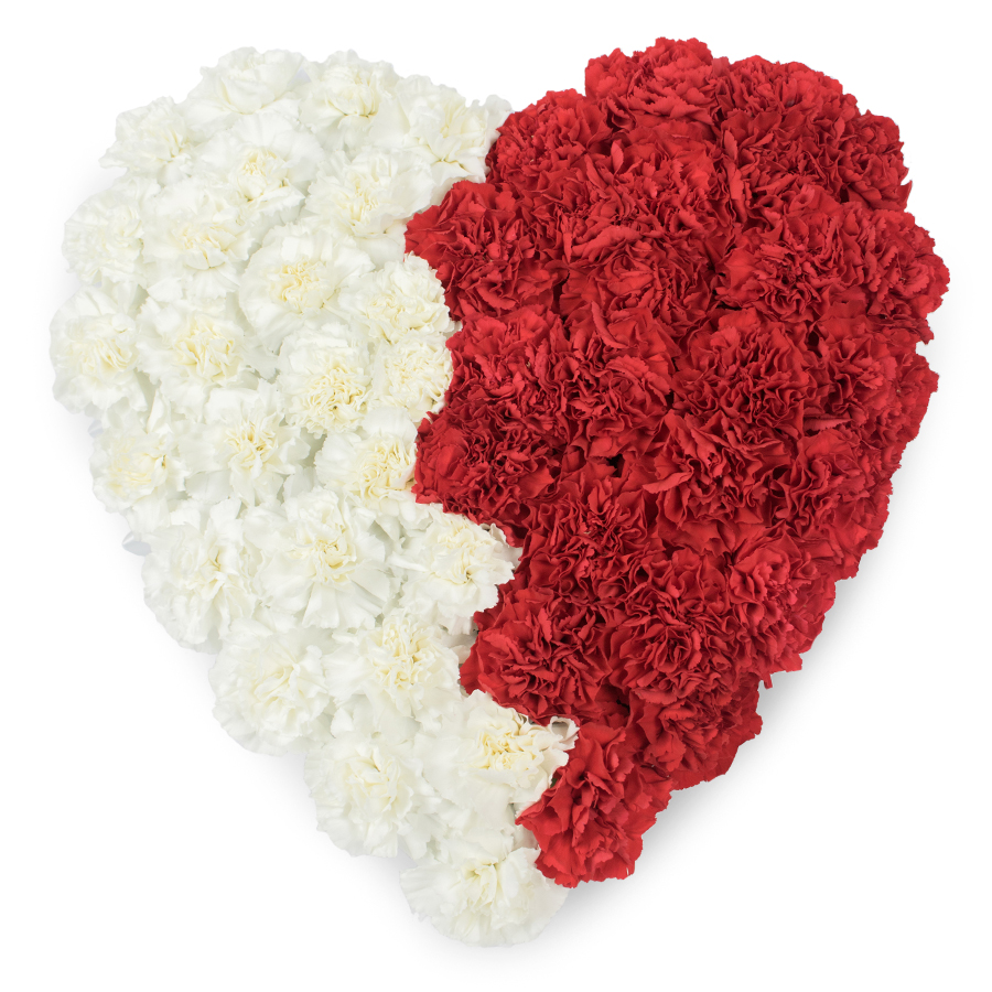 Delight in the charming design of our Heart-Shaped Carnation Bouquet. This exquisite arrangement features a vibrant mix of white and red carnations, each flower hand-selected to ensure exceptional freshness and beauty.